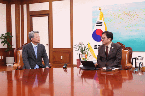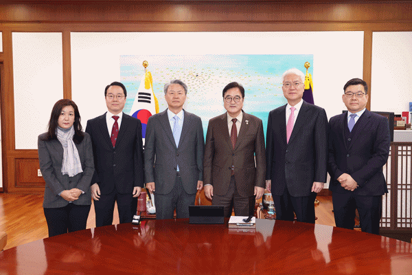 (서울=NSP통신) 강은태 기자 = 우원식 국회의장은 3일 오후 의장집무실에서 최봉경 한국법학교수회 회장 등 임원진을 접견했다.