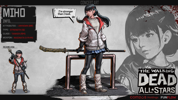 첫 일본인 생존자로는 ‘미호’가 등장한다. 불명 성향의 미호는 일본 전통 무기 나기나타를 사용하는 탱커로 활약한다.