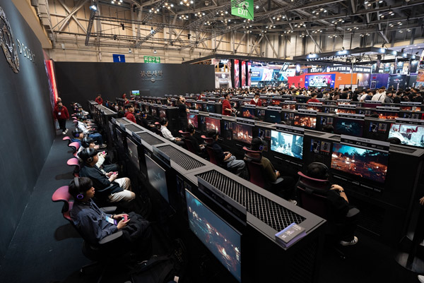 붉은사막 전시관은 100여대의 게임 시연 PC와 사전 영상관으로 꾸몄다. 단일 게임으로는 최대 규모다.