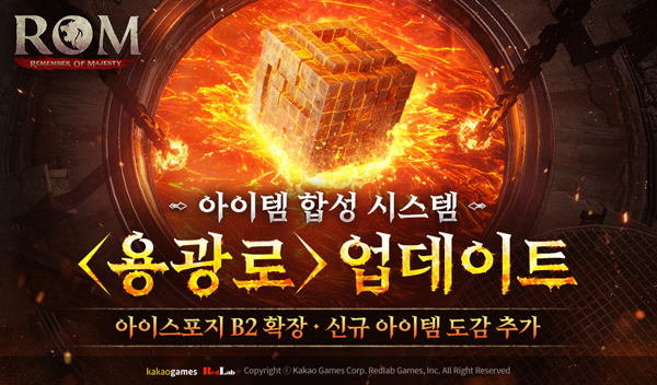 (서울=NSP통신) 이복현 기자 = 레드랩게임즈(대표 신현근)가 개발하고 카카오게임즈(293490)와 함께 글로벌 동시 서비스를 진행중인 정통 하드코어 MMORPG 롬(ROM: Remember Of Majesty)이 아이템 합성 시스템 ‘용광로’를 추가했다.