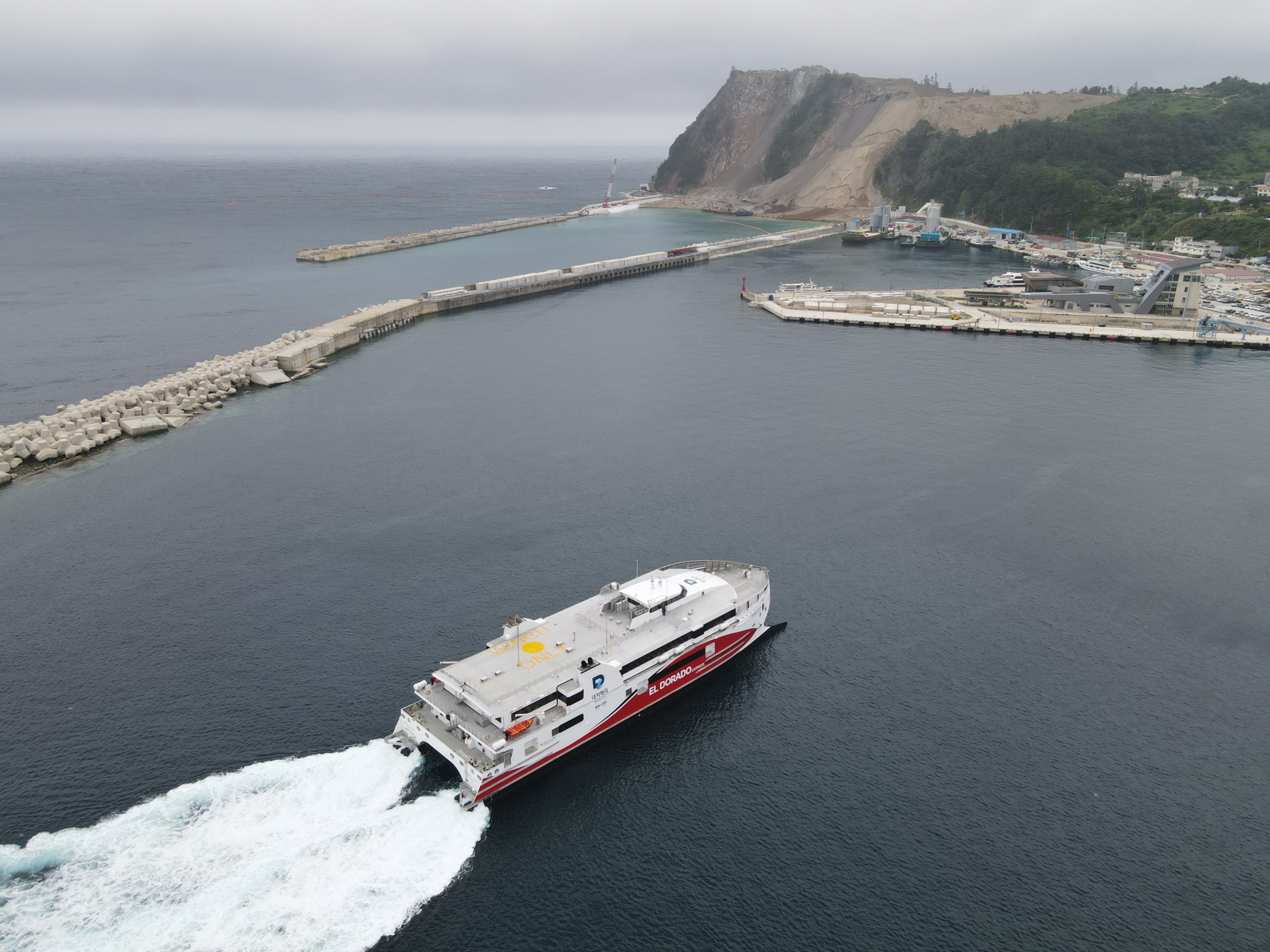 (경북=NSP통신) 최성만 기자 = 울릉~포항간 항로를 운항하는 공모선 엘도라도 익스프레스호가 지난 29일 울릉 사동항에서 취항식을 갖고 본격적인 운항에 들어간다.