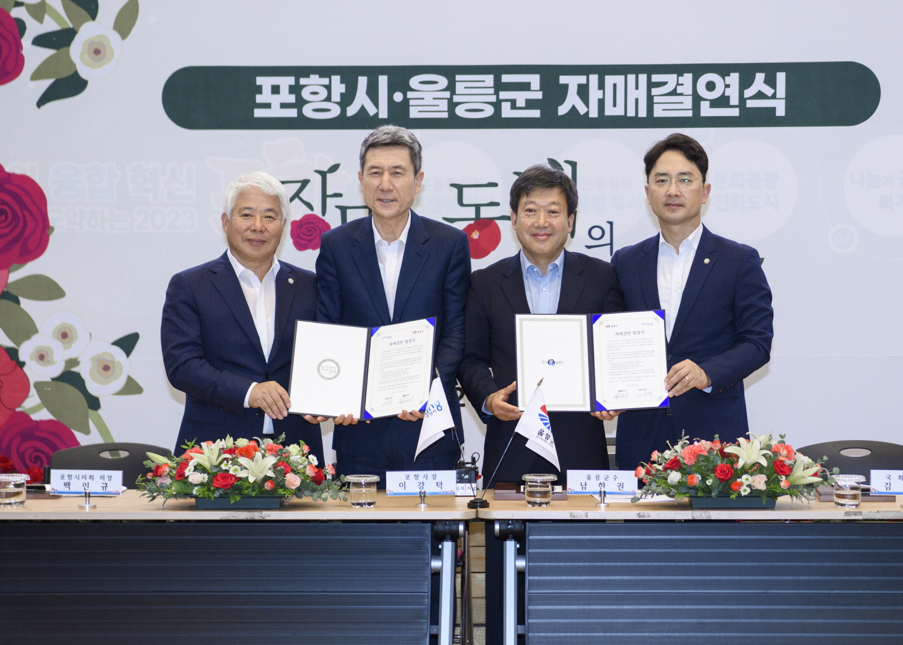 이날 협약식에는 남한권 울릉군수와 이강덕 포항시장을 비롯해 양 도시 분야별 단체장, 관계공무원 등이 참석했다.