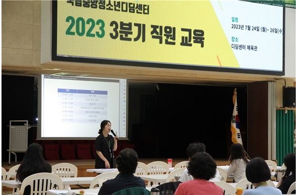 (서울=NSP통신) 강은태 기자 = 국립중앙청소년디딤센터(원장 나상희, 이하 ‘디딤센터’)에서는 지난 24일부터 26일까지 3일간 디딤센터 체육관에서 대면으로 전 직원 교육을 실시했다.