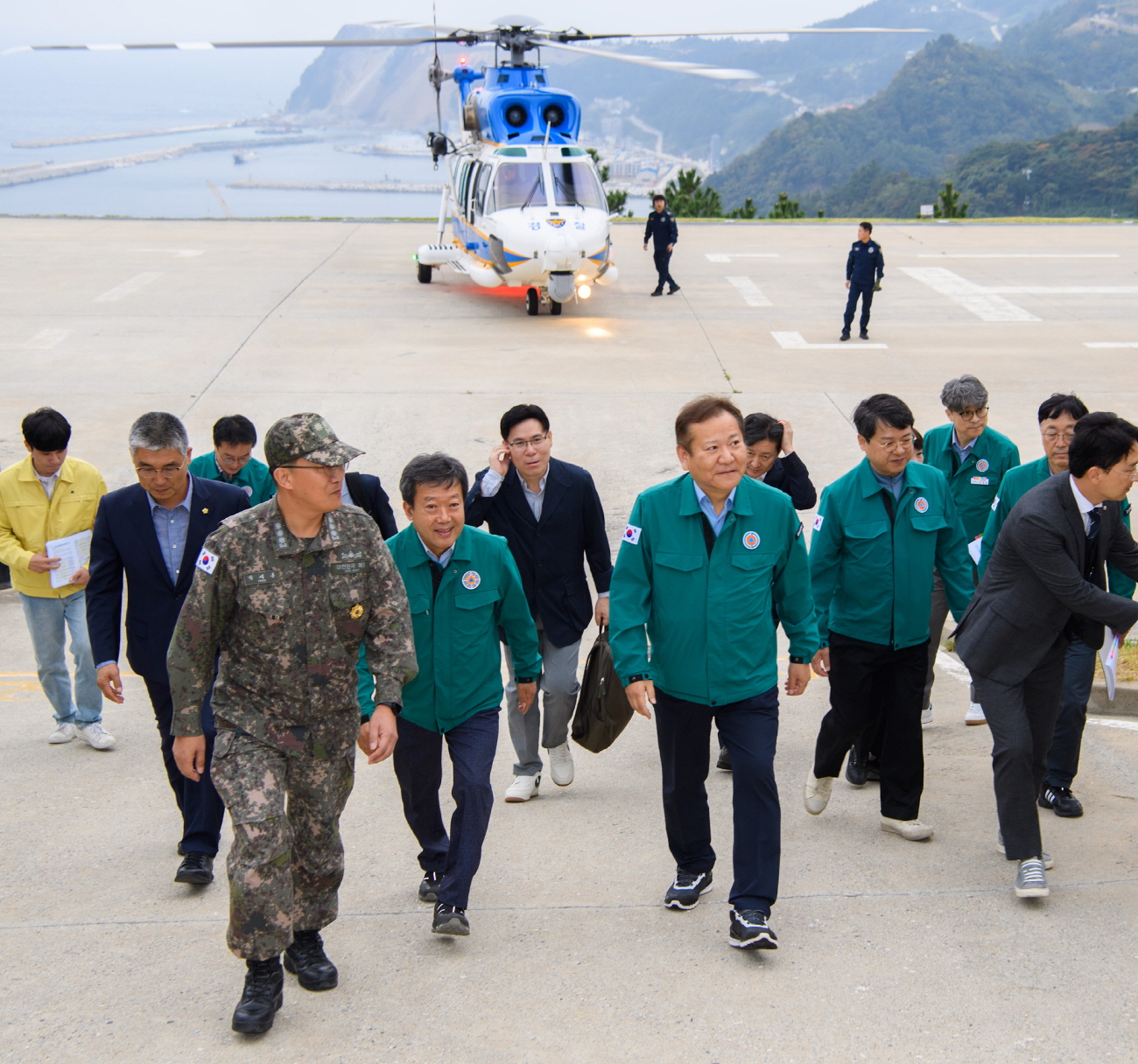 이상민 행정안전부 장관이 19일 울릉도 거북바위 낙석사고 현장을 찾았다. (사진 = 울릉군)