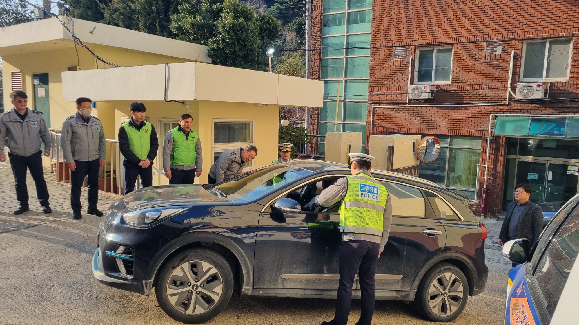 NSP통신-울릉경찰서는 13일 오전 정문에서 서장과 각 과장들이 직접 음주운전 예방캠페과 차량 이용 출근직원을 상대로 음주단속을 실시했다. (사진 = 울릉경찰서)