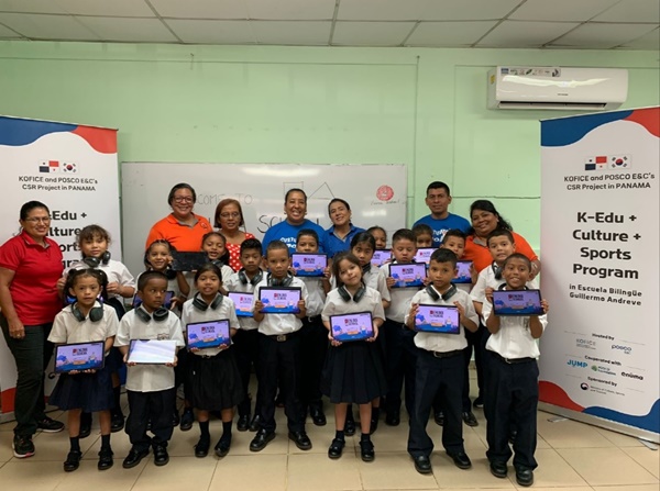 (서울=NSP통신) 강은태 기자 = 포스코이앤씨가 파나마 초등학교에 ‘K 콘텐츠’를 전파하고 있다.