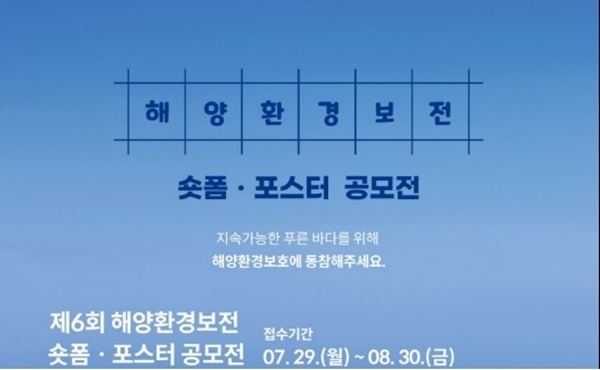 이번 공모전은 숏폼(짧은 영상)과 포스터 각 부문에서 해양환경 보전, 블루카본 보호, 깨끗한 바다 만들기 등을 주제로 하며, 국민 누구나 개인 또는 팀 단위로 참여할 수 있다.