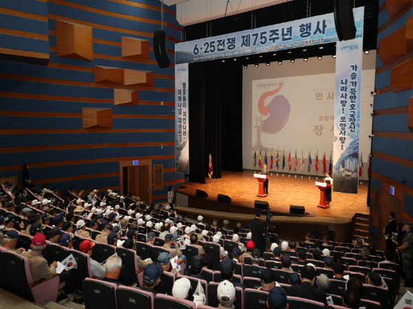 (경북=NSP통신) 조인호 기자 = 포항시는 25일 시청 대잠홀에서 ‘6·25 전쟁 제75주년 행사’를 열고 조국을 위해 헌신한 참전 유공자들의 숭고한 희생을 되새겼다.