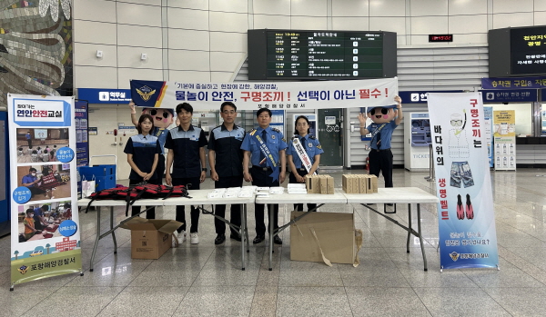 또한 포항역을 찾아 열차를 이용하는 관광객을 대상으로 구명조끼 중요성을 알리는 캠페인을 실시하는 등 성수기 연안사고 예방을 위한 대국민 홍보 캠페인을 진행했다.