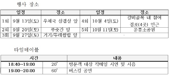 △ 가양주 칵테일로드 붐업 행사 장소와 타임테이블 안내 (표 = 안동시)