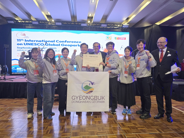 (경북=NSP통신) 조인호 기자 = 경주시는 지난 8일부터 12일(현지시각)까지 칠레 테무코에서 열린 ‘제11회 세계지질공원네트워크(GGN) 총회’에서 경북 동해안 지질공원이 ‘유네스코 세계지질공원 인증서’를 공식 수여 받았다고 밝혔다.