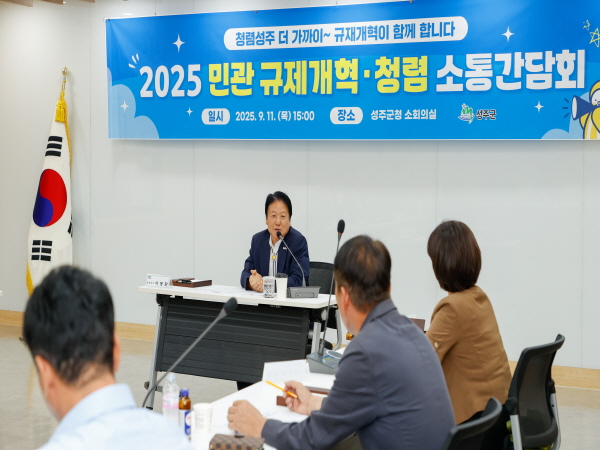 (경북=NSP통신) 김대원 기자 = 성주군(군수 이병환)은 지난 11일 관내 6개 경제 관련 협의회 회장단과 ‘2025 민-관 규제개혁·청렴 소통간담회’를 개최해 규제개혁을 위한 현장의 목소리를 들었다.