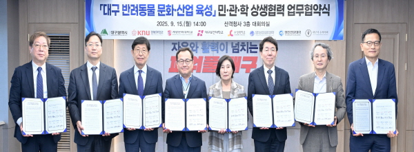 특히 대구시는 이번 협약을 바탕으로 민·관·학 거버넌스를 구축해 반려동물 문화·산업 정책 수립에 전문가 참여를 확대함으로써 정책의 전문성과 현장성을 강화하고 실효성을 높일 계획이다.