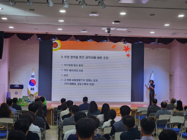 이번 교육은 직원들의 청렴 인식을 높이고 반부패 청렴 문화를 확산하기 위해 마련됐으며 국민권익위원회 청렴연수원에 등록된 김혜정 청렴교육 전문강사가 강의를 진행했다.