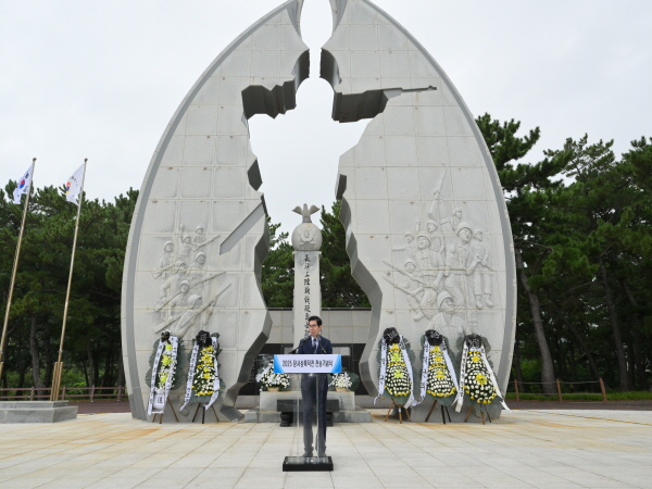 (경북=NSP통신) 조인호 기자 = 영덕군은 1950년 9월 14일 전개된 장사상륙작전의 75주년을 맞아 지난 12일 장사해수욕장에 있는 전승기념탑에서 기념식을 개최했다.