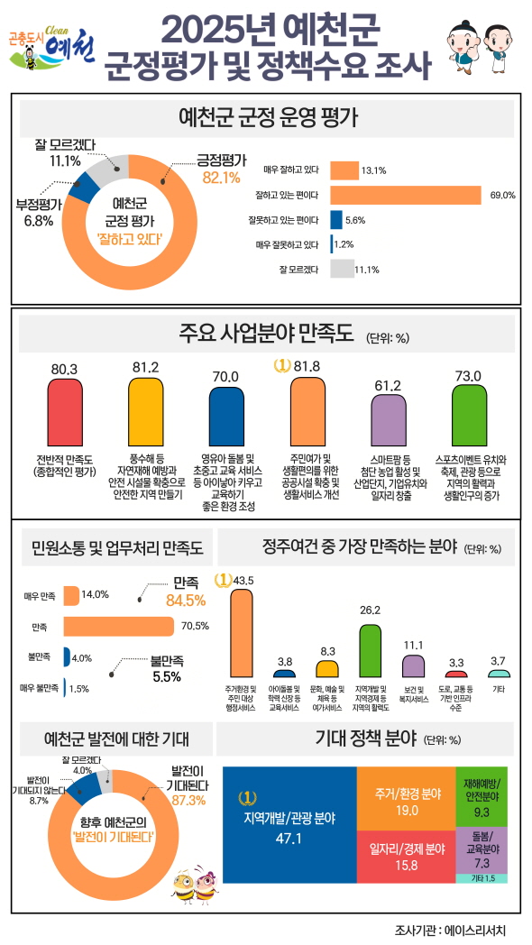 2025년 예천군 군정평가 및 정책수요 조사 결과, 응답자 82.1%, 군정 추진에 만족, 앞으로의 발전이 기대돼, 87.3% (사진 = 예천군)