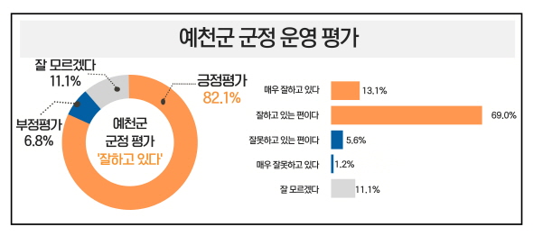 조사 결과 응답자의 82.1%가 예천군의 군정 운영을 ‘잘하고 있다’고 평가했다.