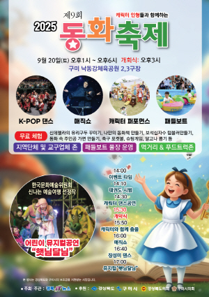 (경북=NSP통신) 조인호 기자 = 구미시와 경상북도가 후원하는 ‘2025 제9회 동화축제’가 오는 20일 오후 1시부터 6시까지 구미 낙동강체육공원 2·3구장에서 열린다.