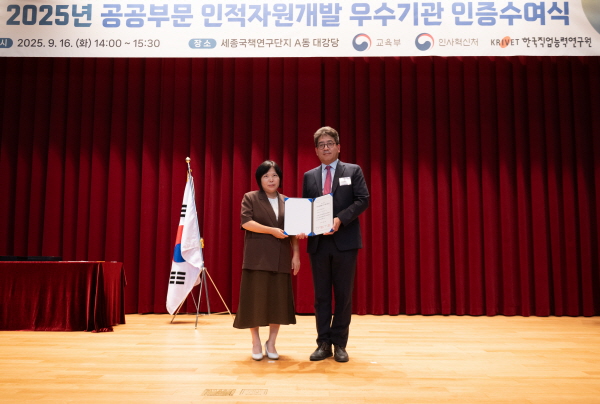 (경북=NSP통신) 김대원 기자 = 한국교육학술정보원(원장 정제영, 이하 케리스)은 지난 16일 교육부와 인사혁신처가 주관하는 '2025년 인적자원개발 우수기관(Best HRD)' 인증을 신규 획득했다.