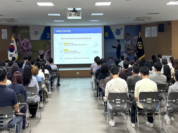 이날 교육은 오전과 오후 2회로 나뉘어 △청탁금지법 △특혜 제공 △예산 부당 집행 △직장 내 괴롭힘 등에 대해 실무 중심의 사례와 대응 방안을 위주로 교육을 진행해 직원들의 이해와 실천을 독려했다.