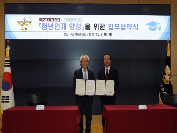(경북=NSP통신) 김대원 기자 = 한국장학재단(이사장 배병일)은 지난 18일 국군재정관리단(단장 김천중)과 ‘정부 학자금 지원제도 및 중복지원방지 사업 등 청년 인재 양성과 정부 예산 집행의 효율화를 위한 업무협약(MOU)’을 체결했다.
