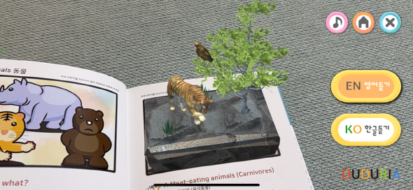 AR 도서는 증강현실 기술을 활용한 신개념 도서로 태블릿PC나 스마트폰 등 스마트 기기로 책 속 삽화를 비추면 3D 입체 영상과 음향이 현실 공간에 구현된다.