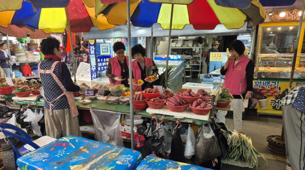 (경북=NSP통신) 김대원 기자 = 경산시여성단체협의회(회장 이정희) 회원 20여 명은 지난 22일 경산 공설시장에서 ‘추석맞이 전통시장 장보기 캠페인’을 실시했다.