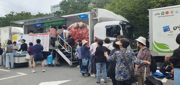 (경북=NSP통신) 김오현 기자 = 영주시는 24일 서울 강남구청 주차장에서 열린 ‘강남구 추석맞이 직거래장터’에 참여해 지역 농특산물 홍보에 나섰다.