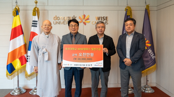 (경북=NSP통신) 조인호 기자 = 동국대 WISE캠퍼스(총장 류완하)가 지난 23일 원푸드림 강길주 대표이사가 대학 발전을 위해 발전기금 5천만 원을 기탁했다고 밝혔다.