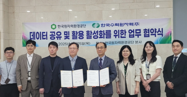 (경북=NSP통신) 조인호 기자 = 한국원자력환경공단(이사장 조성돈)은 지난 25일 본사에서 한국수력원자력(사장 직무대행 전대욱)과 데이터 공유 및 활용 활성화를 위한 업무협약(MOU)을 체결했다.