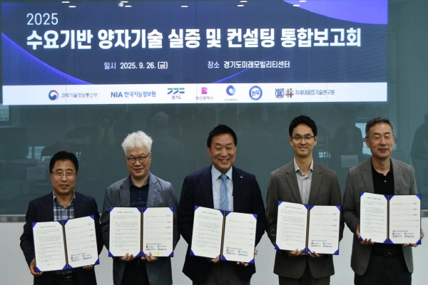(경북=NSP통신) 김대원 기자 = 한국지능정보사회진흥원(원장 황종성, 이하 'NIA')은 과학기술정보통신부(장관 배경훈, 이하 ‘과기정통부’)와 함께 ‘수요기반 양자기술 실증 및 컨설팅’ 사업 통합보고회를 지난 26일 경기도 미래모빌리티센터에서 개최했다.