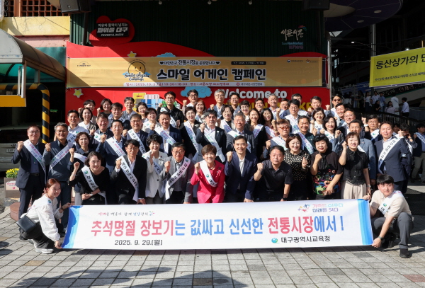 강은희 교육감은 “민족 고유 명절인 추석을 맞아 대구 시민들께서 전통시장을 많이 찾아 제수용품 등을 준비하여 풍성한 명절을 보내시길 바란다”며 “앞으로도 전통시장과 지역경제 활성화에 기여할 수 있도록 적극 노력하겠다”고 말했다.