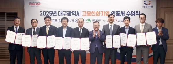 대구시, ‘2025년 고용친화기업’ 인증서 수여식 개최