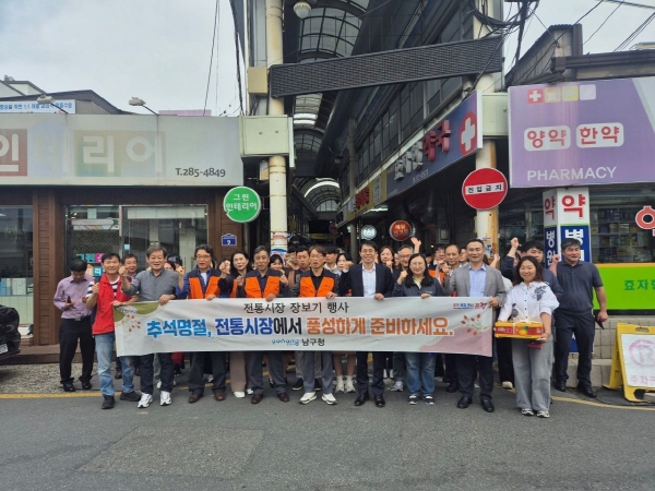 박상진 남구청장은 “신선한 먹거리와 다양한 명절 상품을 구입할 수 있는 전통시장을 이용하여 주길 바란다”며 “지역경제 활성화와 소비 촉진을 위해 지역 기관 및 단체 등 시민들이 전통시장을 이용하여 지역경제 살리기에 적극 동참하길 부탁드린다”고 말했다.
