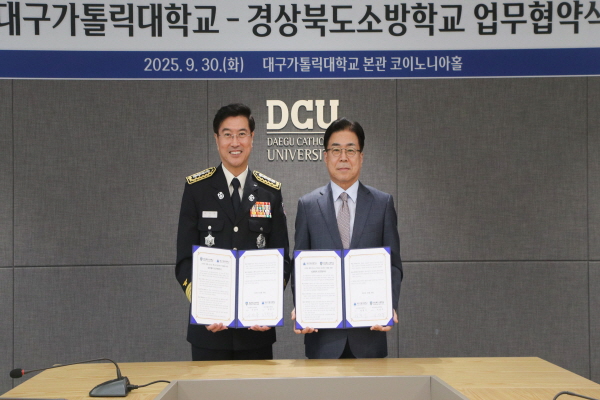 (경북=NSP통신) 김대원 기자 = 대구가톨릭대학교(총장 성한기)와 경상북도소방학교(학교장 이상무)가 지역과 함께 만드는 혁신과 상생의 미래를 위해 손을 맞잡았다.