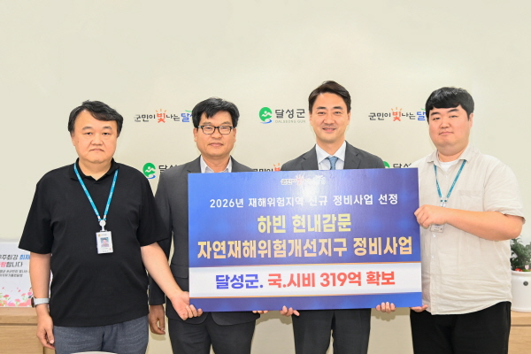 (경북=NSP통신) 김대원 기자 = 달성군(군수 최재훈)은 행정안전부가 주관하는 ‘2026년 자연재해위험개선지구 정비사업 신규사업’에서 하빈 현내감문지구가 최종 선정돼 국·시비 319억 원을 확보했다고 밝혔다.