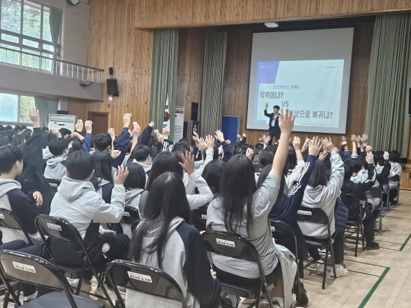 학생 대상 학교폭력예방교육은 학교폭력 담당 김인경, 오태영 장학사가 4개교 600여 명의 학생을 대상으로 학교폭력예방교육을 실시했다.