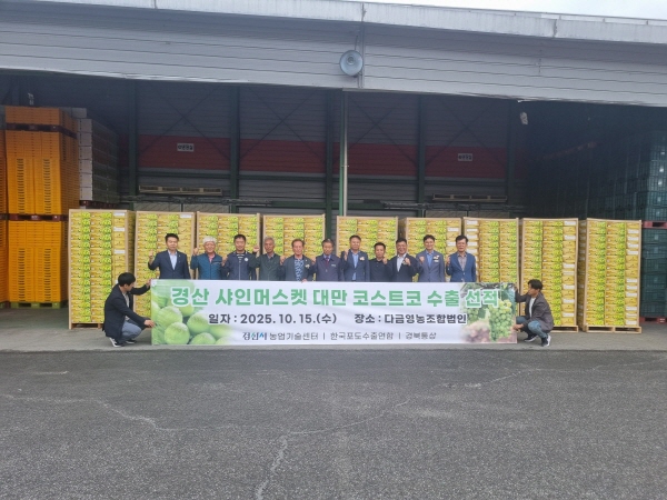 (경북=NSP통신) 김대원 기자 = 경산시(시장 조현일)는 지난 15일 다금영농조합법인에서 양재영 시의원, 이성관 압량농협장, 하주골 포도영농조합회원을 비롯한 관계자 50여 명이 참석한 가운데 대만 수출 선적식을 개최했다.