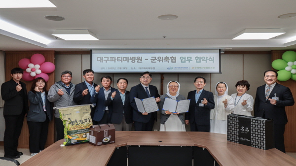 이번 협약식은 대구파티마병원 임원회의실에서 열렸으며 병원 측에서는 김선미 병원장을 비롯한 주요 보직자가 군위축협에서는 박배은 조합장과 관계자가 참석한 가운데 진행됐다.
