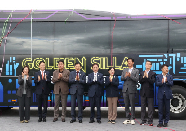 (경북=NSP통신) 조인호 기자 = 경주시는 22일 황룡사역사문화관에서 ‘Golden Silla - XR버스’ 오픈 세리머니 및 시승식을 열고 APEC 정상회의 개최를 기념한 미래형 이동식 관광콘텐츠의 공식 출범을 알렸다.