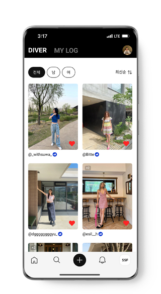 다이버는 누구나 스타일링 콘텐츠를 자유롭게 올리고, 소통하고 피드백을 통해 최근 트렌드를 파악하는 공간이다.