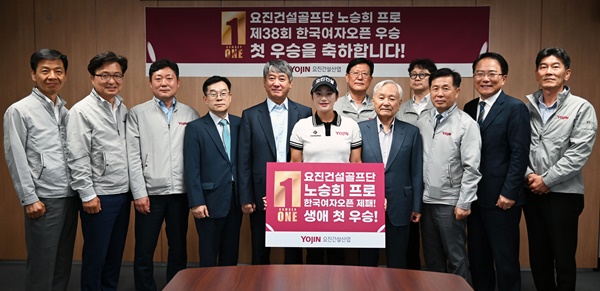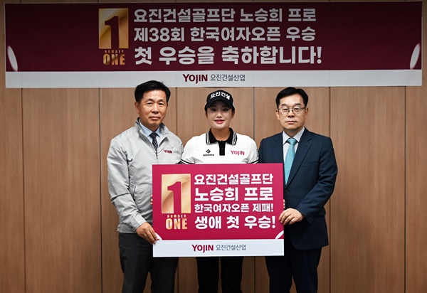 요진건설은 18일 서울시 강남구 논현동에 위치한 사옥에서 노승희 프로의 우승 축하 기념식을 갖고 축하금을 함께 전달했다.