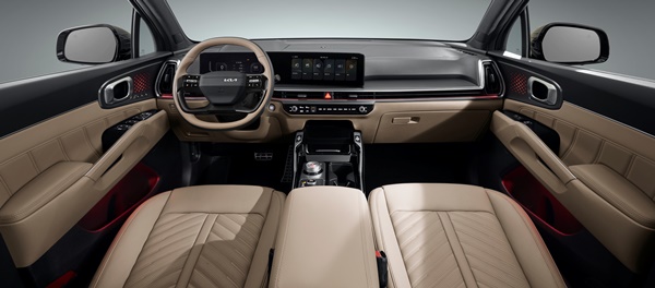 The 2026 쏘렌토는 새로운 디자인의 4스포크 스티어링 휠이 탑재됐으며 앰비언트 라이트가 1열 도어 맵포켓까지 확대 적용돼 실내 고급감이 더욱 향상됐다.