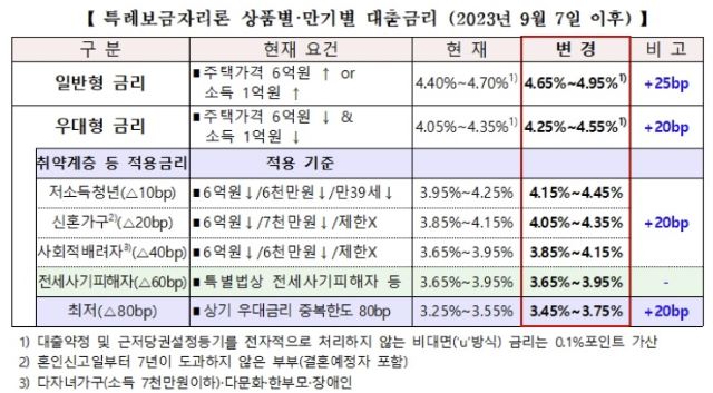다만 전세사기 피해자의 경우 주거안정과 경제적 재기 지원을 위해 종전과 동일한 금리인 3.65%~3.95%를 적용한다.