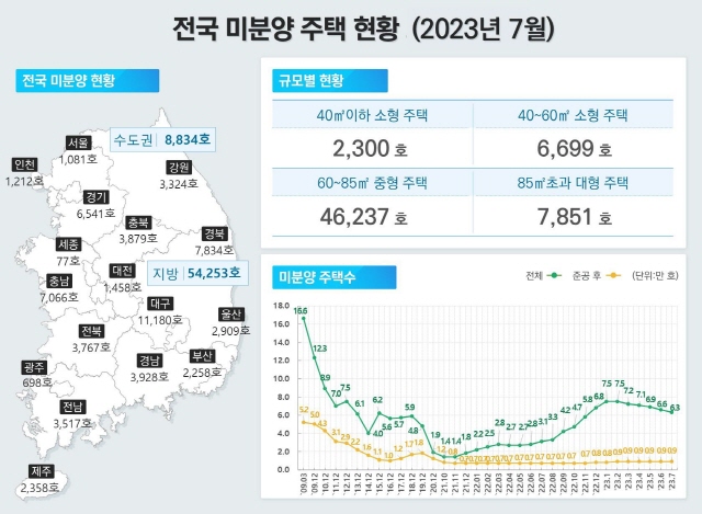 (서울=NSP통신) 정의윤 기자 = 7월 전국 미분양 주택이 총 6만3087가구로 전월 대비 5.0% 감소한 것으로 나타났다.