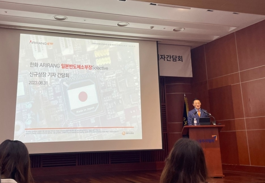 김성훈 한화자산운용 ETF사업본부장은 지난달 금융투자협회에서 열린 ‘아리랑 일본반도체소부장 솔렉티브 ETF’ 출시 기자간담회에서 “엔화에 투자함과 동시에 일본에서 가장 성장성이 높고 전망이 좋은 반도체 소부장에 투자할 수 있는 형태로 ETF를 출시했다”며 “추후에 엔고로 전환이 됐을 때 매도하는 것도 좋은 투자전략이 될 것”이라고 말했다.