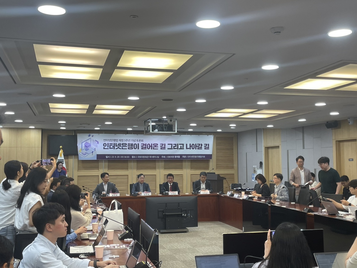 20일 국회 의원회관에서는 인터넷은행법 제정 5주년 기념 ‘인터넷은행이 걸어온 길 그리고 나아갈 길’ 토론회가 개최됐다. 토론회에서 국민의힘 유의동 의원과 인터넷전문은행 3사는 인터넷전문은행 출범 후의 성과와 향후 발전방향을 논의했다.