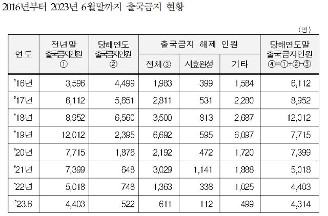 이들 중 출국금지 조치까지 내려졌다가 해제된 체납자도 2658명이다.