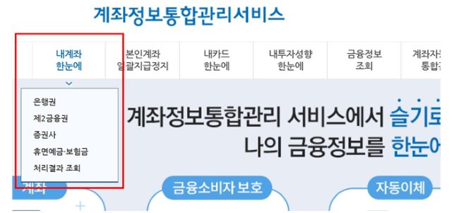 금융소비자 정보포털 또는 앱을 통해 ’내 계좌 한눈에‘ 서비스를 이용하는 경우 모든 금융권의 휴면 금융자산과 ‘장기미거래 금융자산’을 조회할 수 있으며 1년 이상 거래가 없는 잔고가 100만원 이하인 예금, 적금, 투자자예탁금, 신탁계좌의 경우 즉시 환급받을 수도 있다. 동일한 경로를 통해 ‘내 카드 한눈에’ 서비스를 이용하는 경우 미사용 카드포인트도 조회하고 현금화할 수 있다.