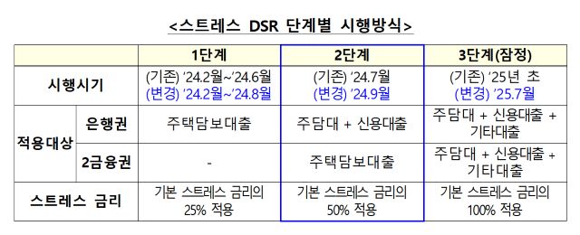 금융당국은 “스트레스 DSR은 단계적·점진적으로 시행중이며 DSR이 적용되는 모든 가계대출에 대해 스트레스 금리를 적용하는 스트레스 DSR 3단계의 시행시기는 해당 제도의 안착 추이 등을 봐가며 확정(2025년 7월(잠정))해나갈 예정”이라고 밝혔다.
